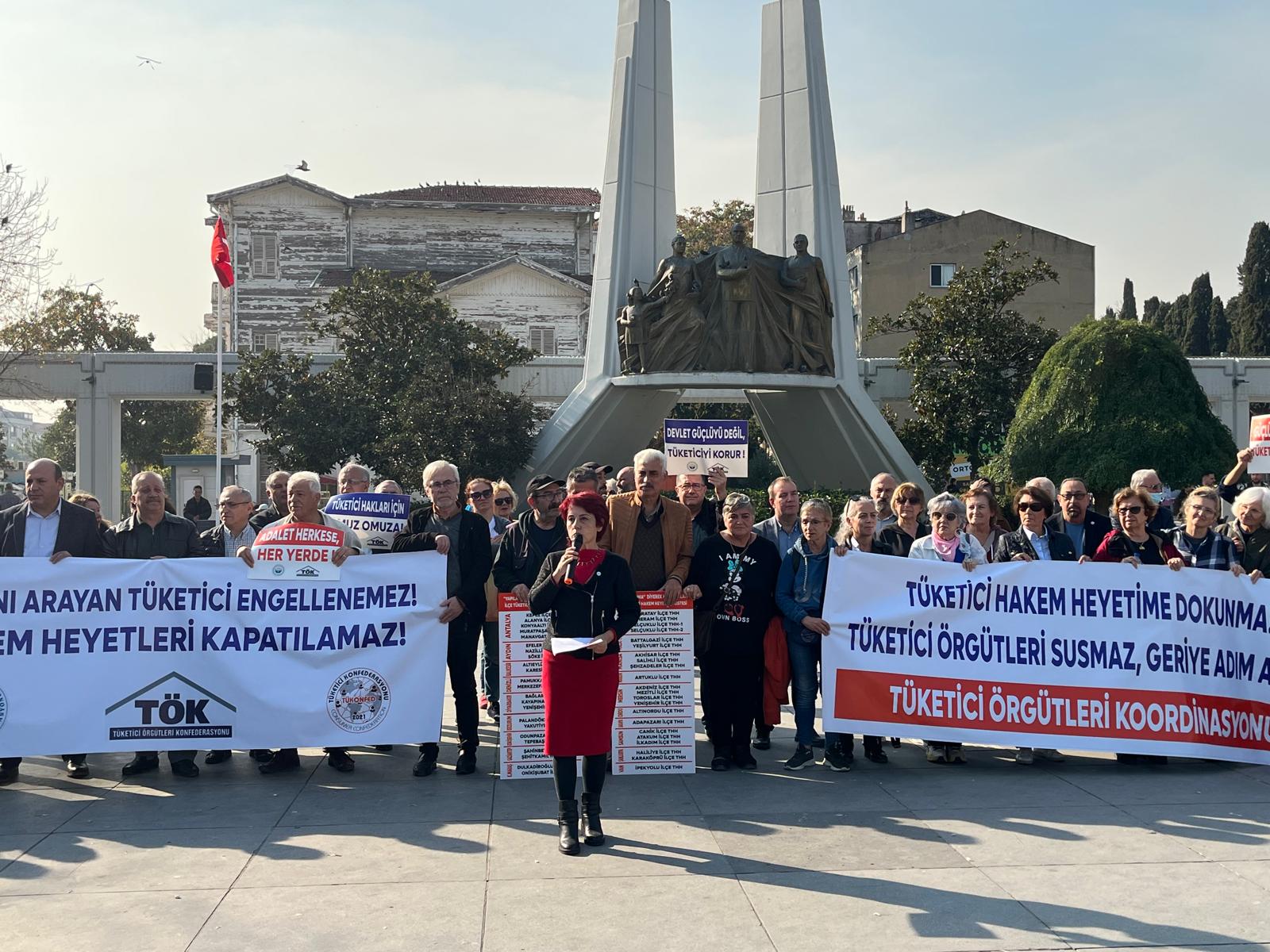 Bakırköy Özgürlük Meydanı’nda bir araya gelen TÜKON-Tüketiciler Konfederasyonu, TÖK-Tüketici Örgütleri Konfederasyonu ve TÜKONFED-Tüketici Konfederasyonu ile federasyonlar ve dernekler, 1 Kasım’da bir araya gelerek, basın açıklaması yaptı.