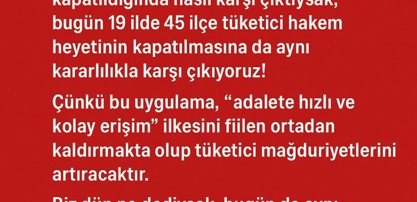 Tüketiciyi Koruma Derneği, Tüketici Hakem Heyetleri’nin azaltılmasına karşı çıktığını tekrar dile getirdi. Konuya ilişkin açıklama şöyle: